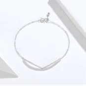 Brilliant V-shaped Bracelet 925 Sterling Silver, white gold plated, with cubic zirconia and adjustable length