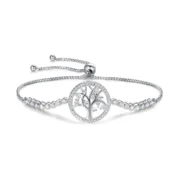 Tree of Life Bracelet, 925 Sterling Silver, white gold plated, with cubic zirconia and adjustable length.