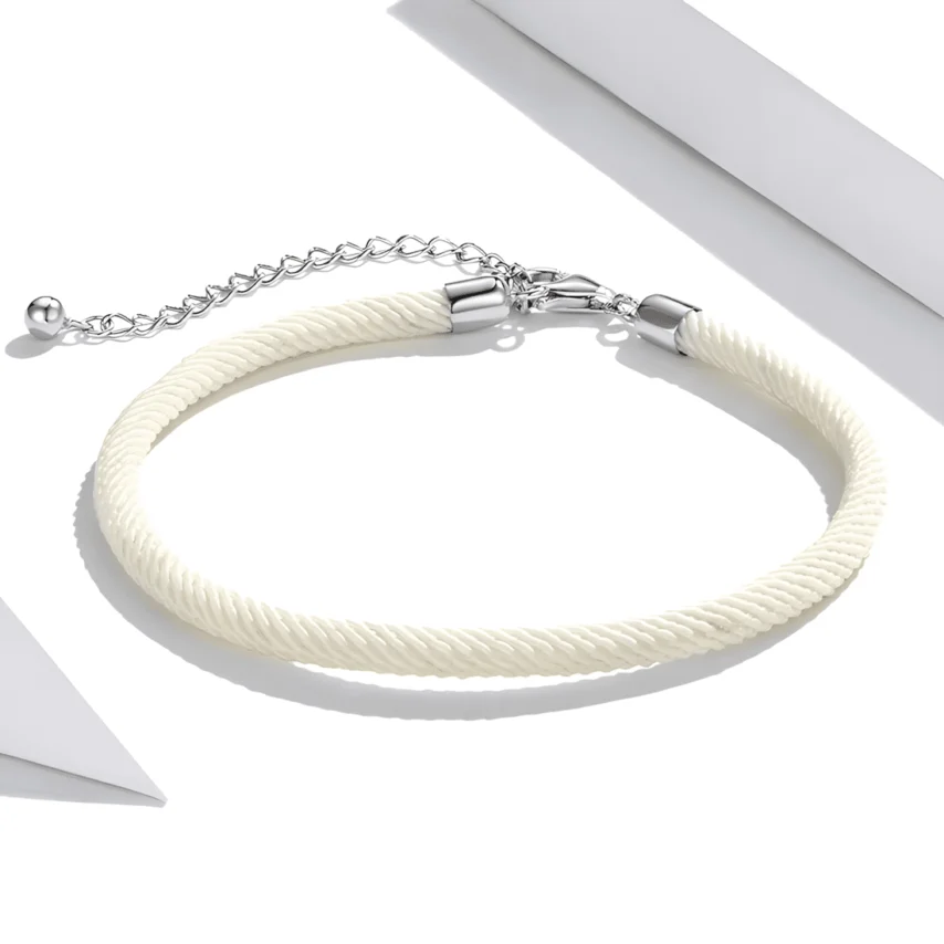 White Rope Bracelet in nautical style, with adjustable length and clasp in white gold plated 925 Sterling Silver