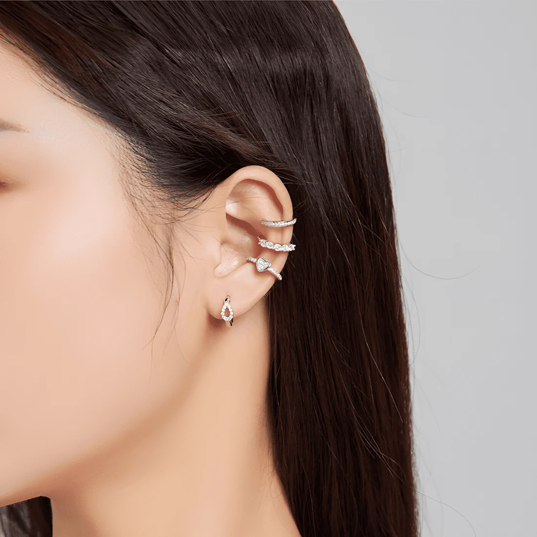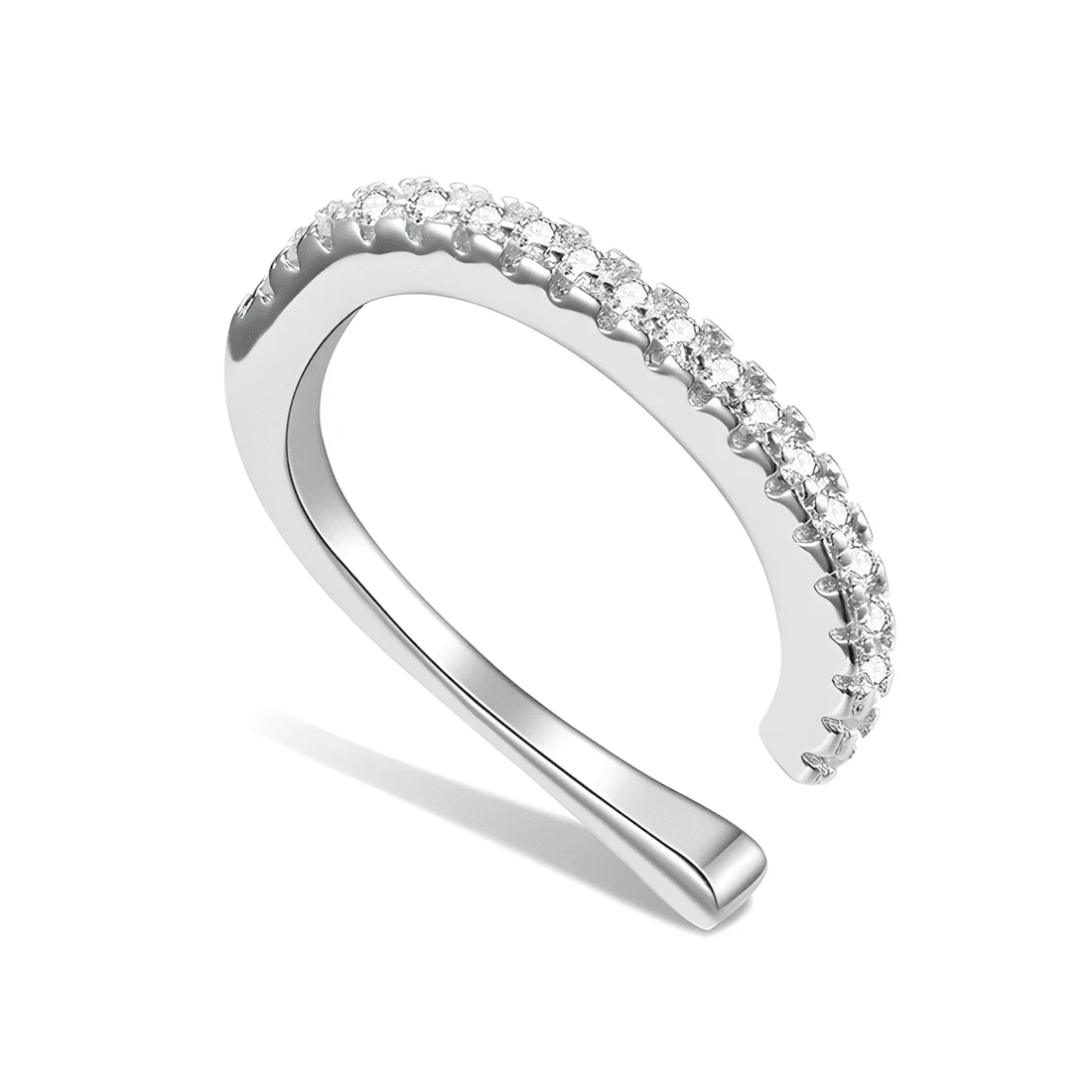 Brilliant Ear Cuff, 925 Sterling Silver, white gold plated, with cubic zirconia.
