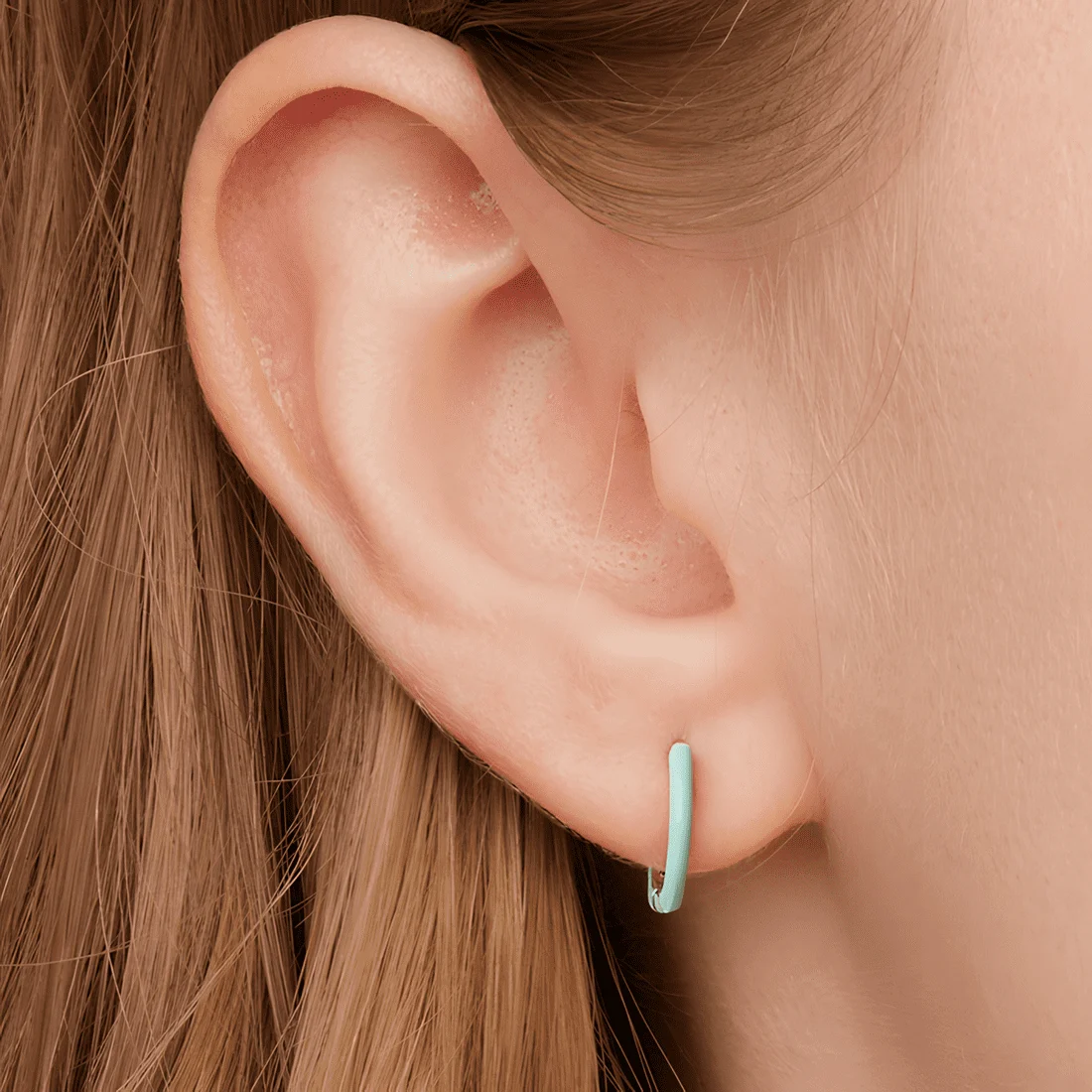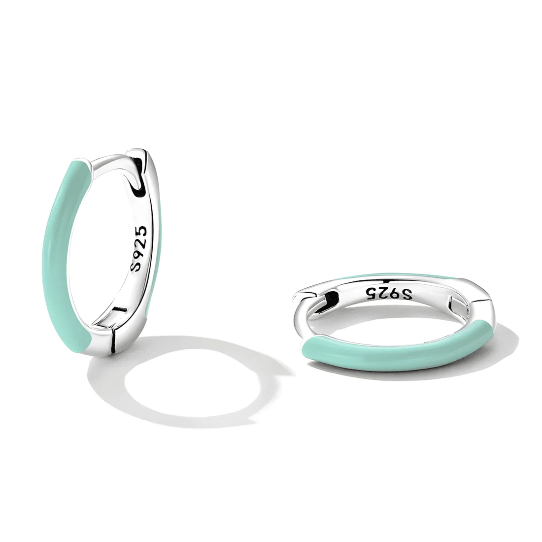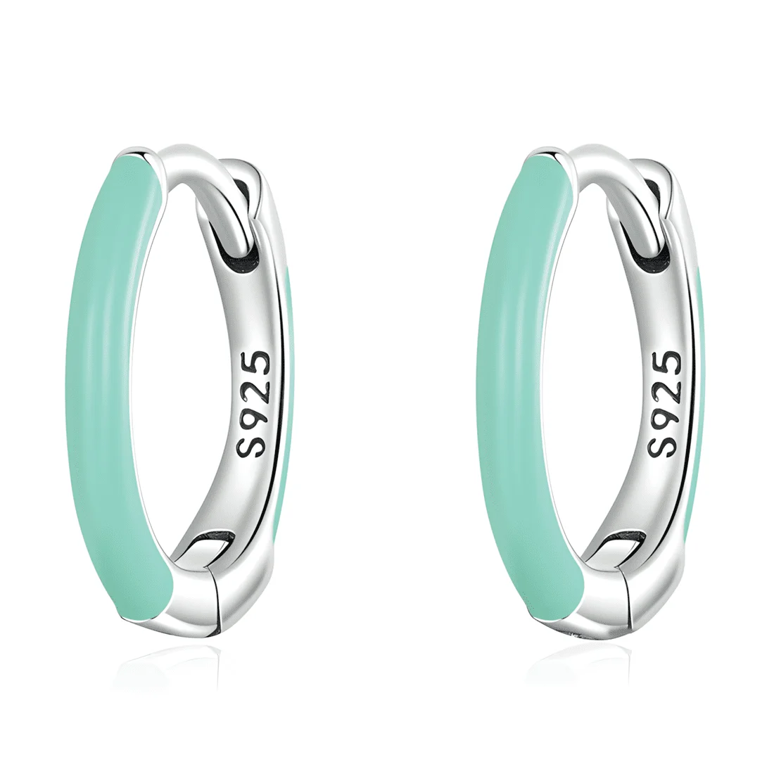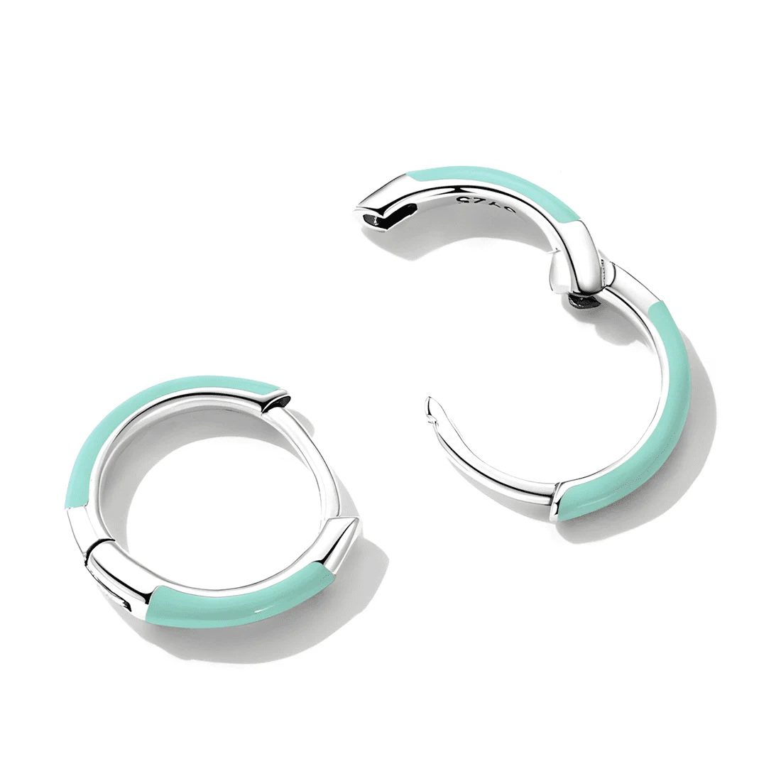Aqua Green Hoops Earrings, 925 Sterling Silver, white gold plated, with aqua green enamel.