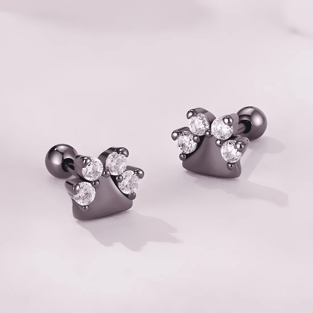 Brilliant Paws Stud Earrings, 925 Sterling Silver, black plated, with cubic zirconia.