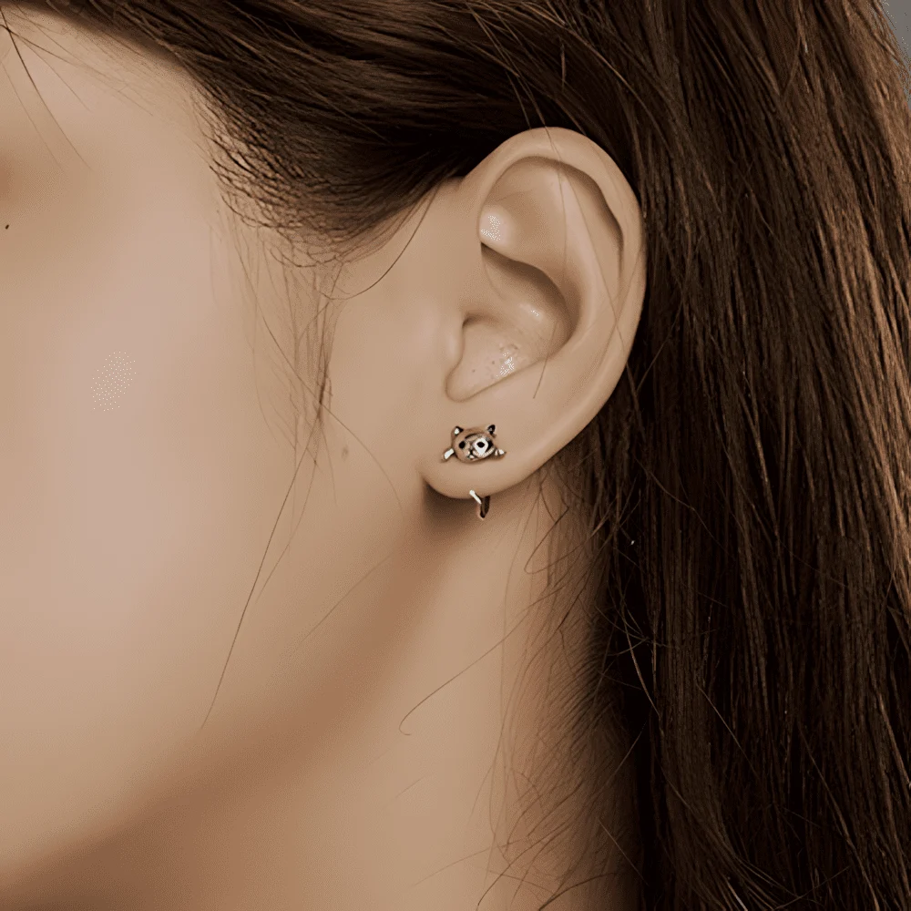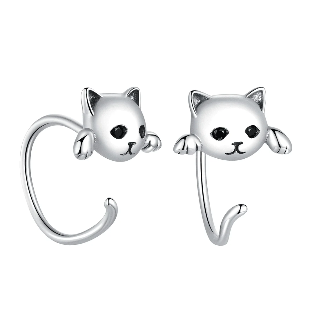 Cats Stud Earrings, 925 Sterling Silver, white gold plated.