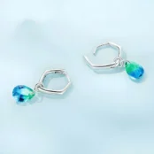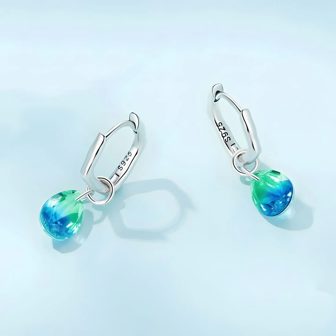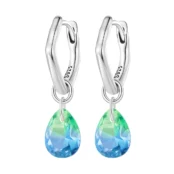 Green and Blue Teardrop Earrings, 925 Sterling Silver, white gold plated, with green and blue teardrop-shaped cubic zirconia.