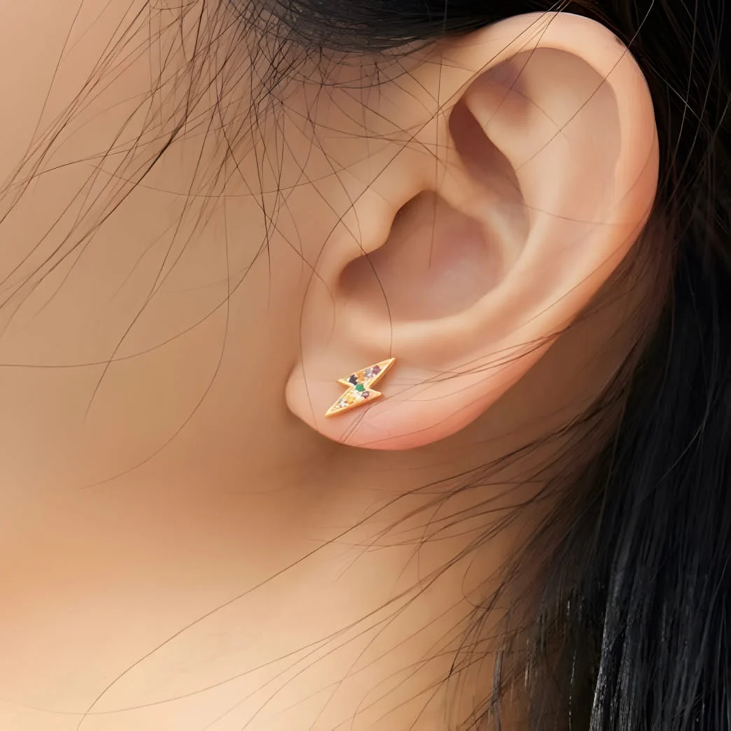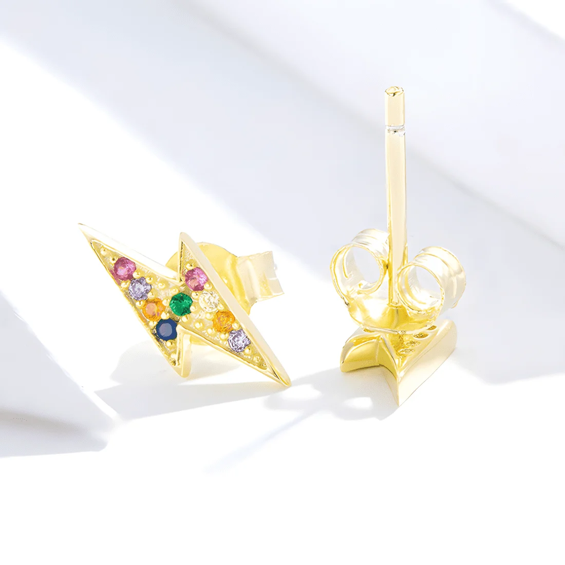 Lightnings Stud Earrings, 925 Sterling Silver, yellow gold plated, with colored cubic zirconia.