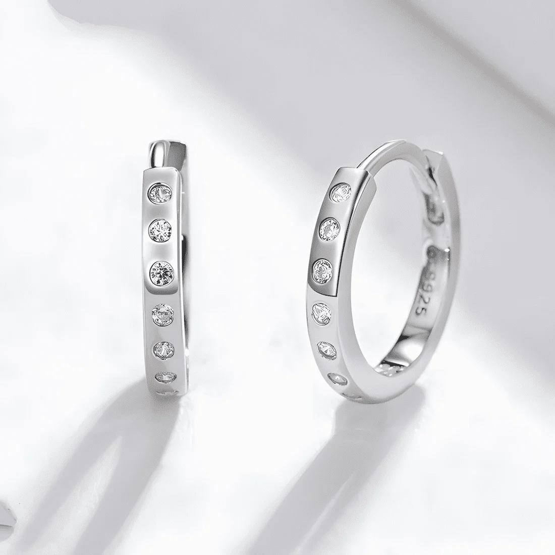 Luminous Hoop Earrings, 925 Sterling Silver, white gold plated, with cubic zirconia.