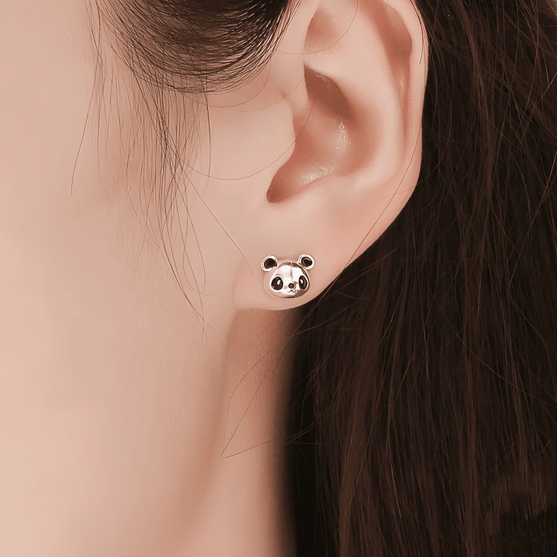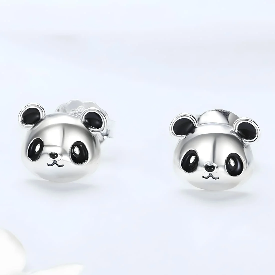 Panda Stud Earrings, 925 Sterling Silver, white gold plated.