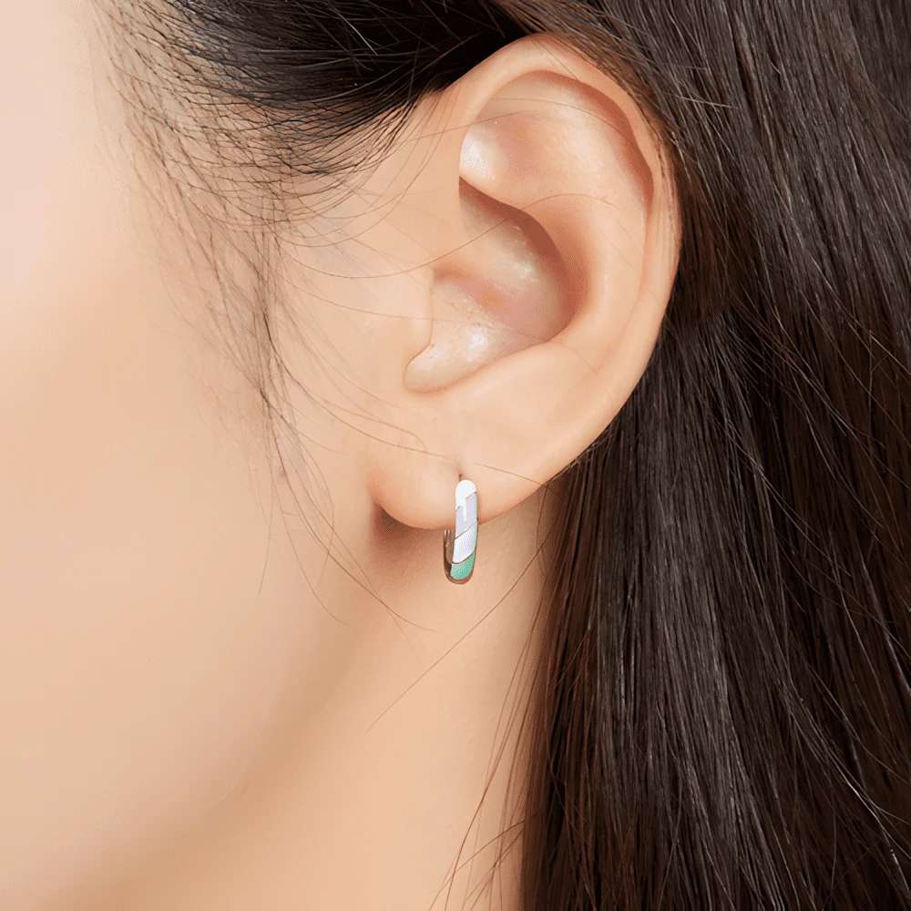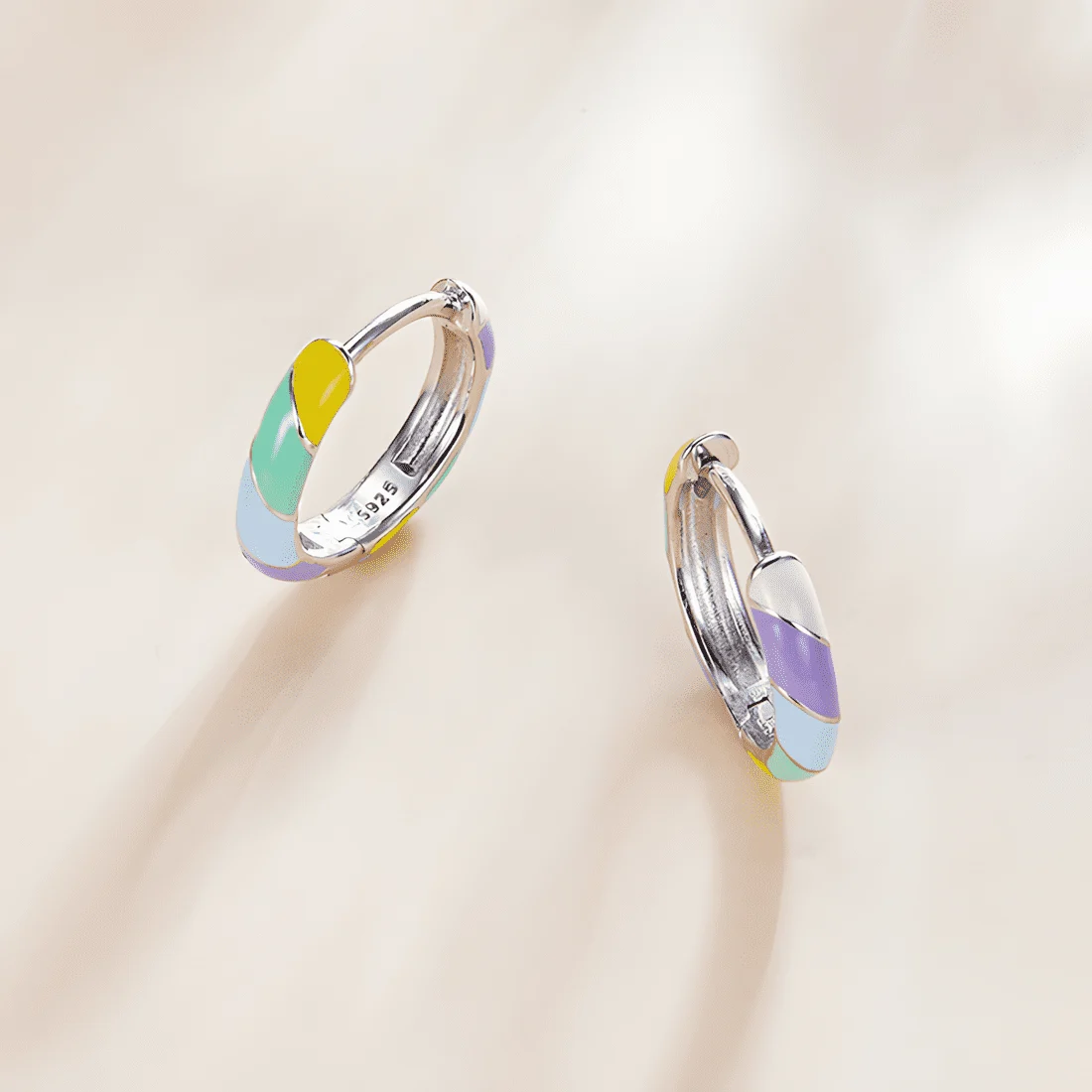 Pastel Enamel Hoop Earrings 925 Sterling Silver, white gold plated, with multicolored enamel