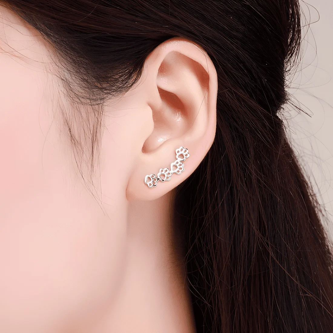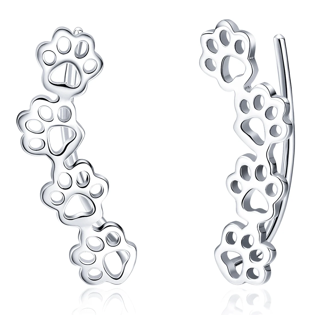Paws Stud Earrings 925 Sterling Silver, white gold plated