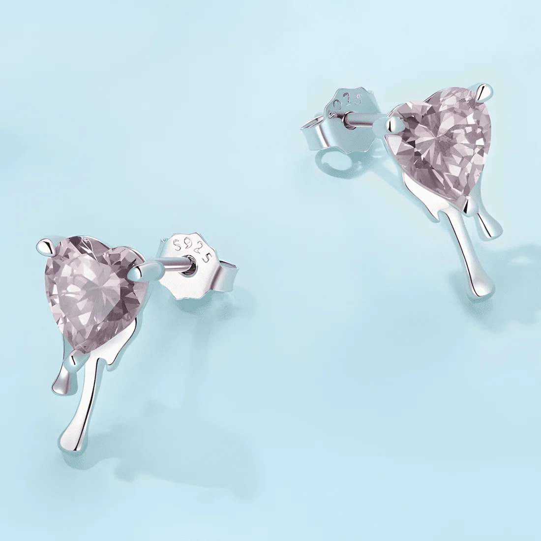 Pink Heart Stud Earrings 925 Sterling Silver, white gold plated, with pink heart-shaped cubic zirconia