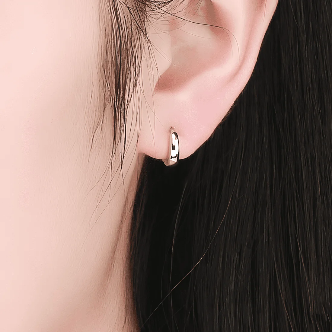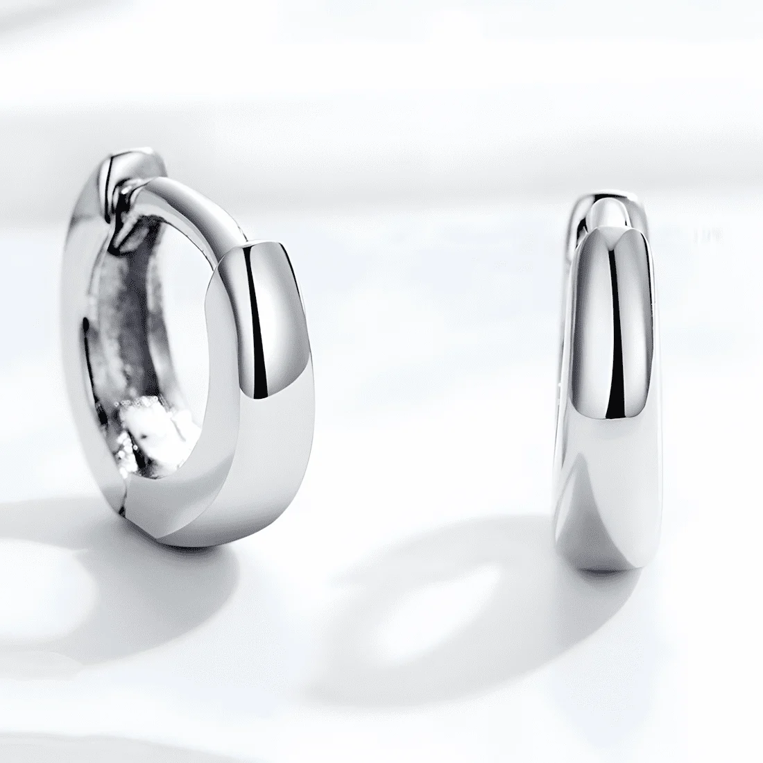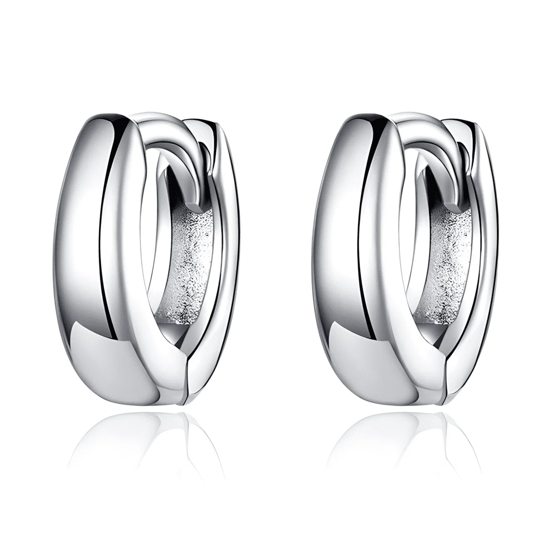 Smooth Hoop Earrings, 925 Sterling Silver, white gold plated.