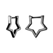 Star Hoop Earrings, 925 Sterling Silver, black plated.