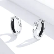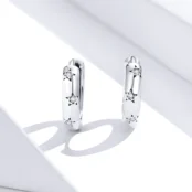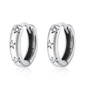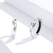 Stars Hoop Earrings, 925 Sterling Silver, white gold plated, with cubic zirconia.