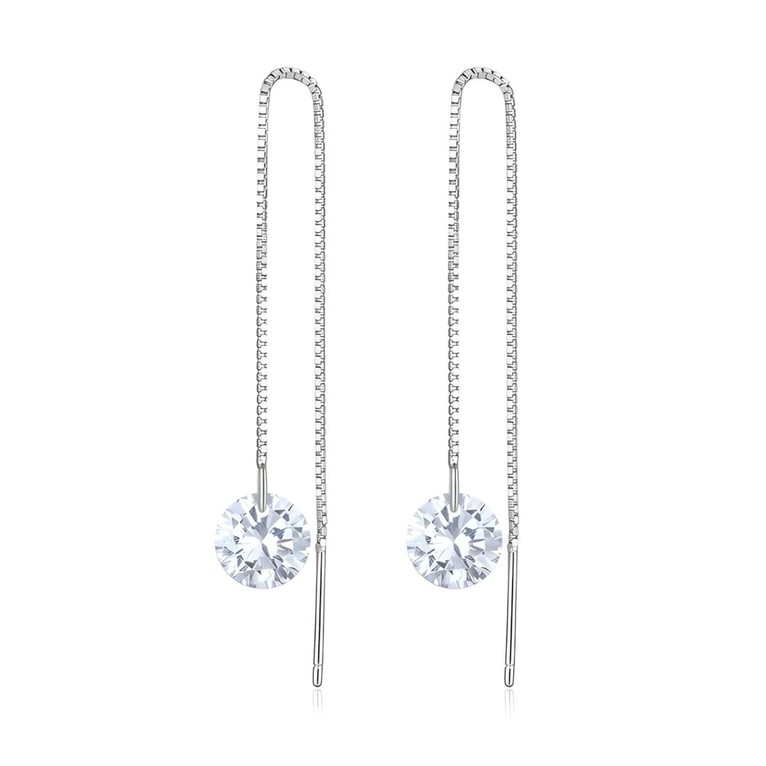 Threader Earrings, 925 Sterling Silver, white gold plated, with cubic zirconia.