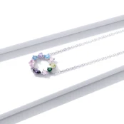 Colored Crystals Necklace 925 Sterling Silver, white gold plated, with colored cubic zirconia and adjustable length