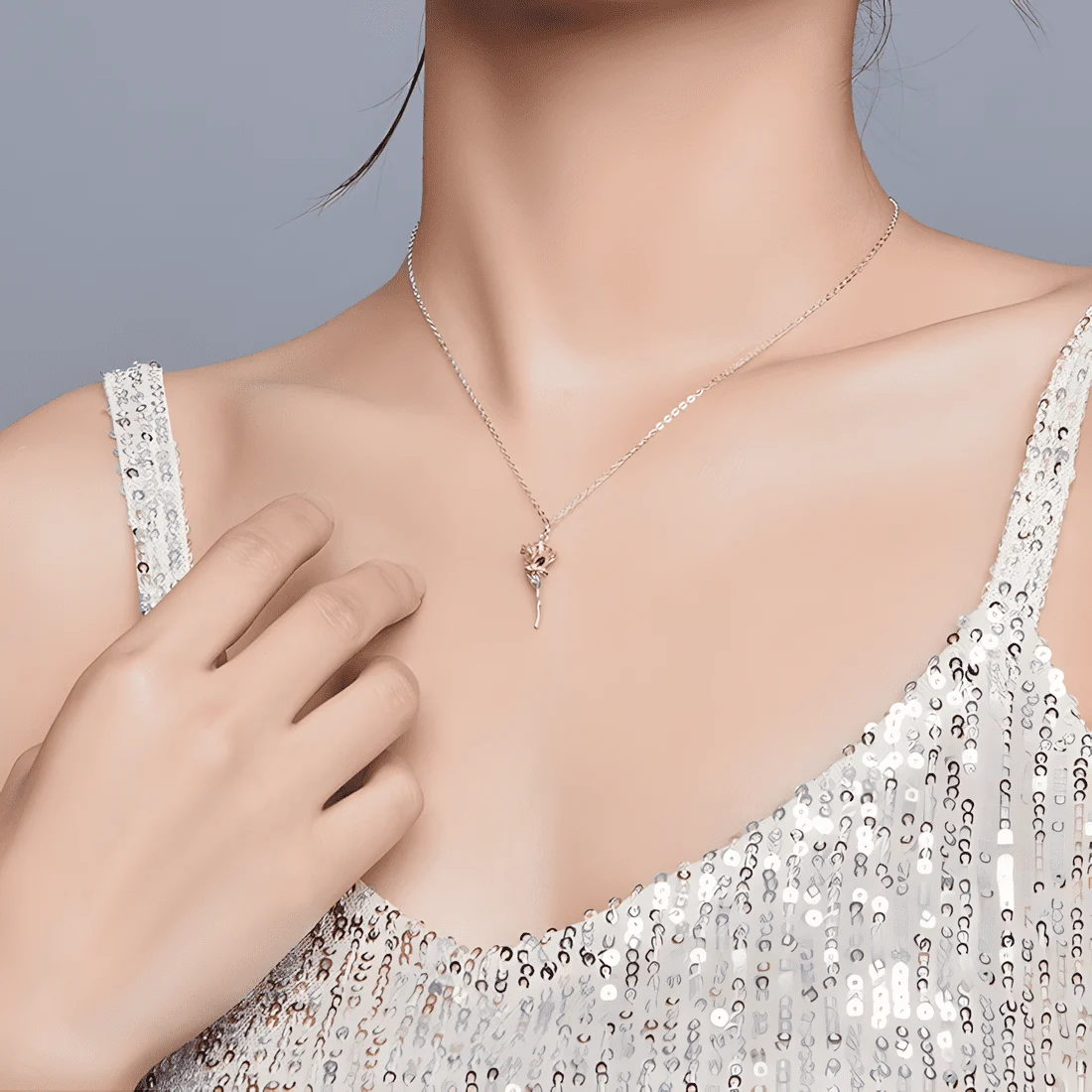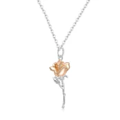 Golden Rose Necklace 925 Sterling Silver, white gold plated, with rose gold plated petals and adjustable length