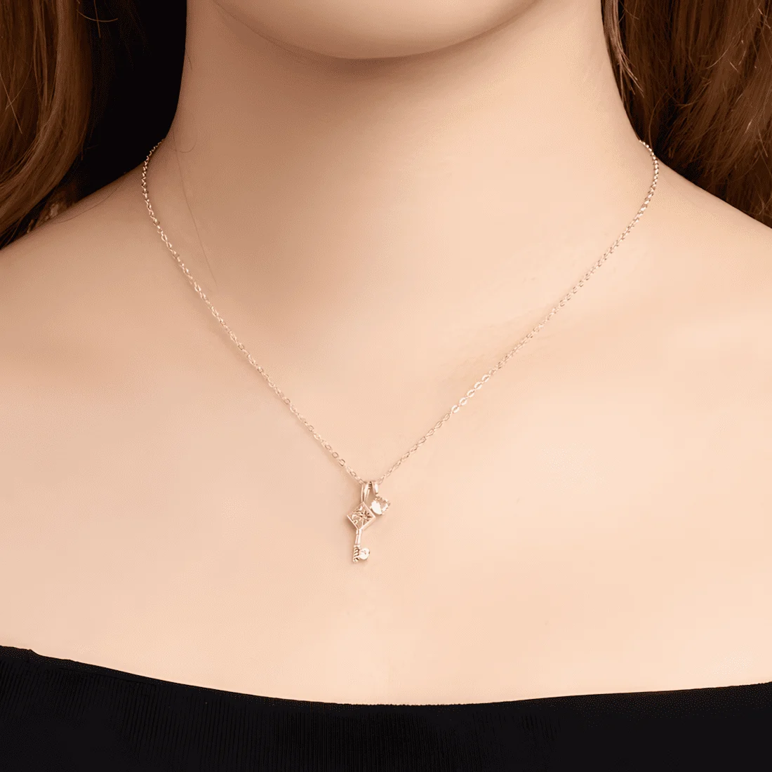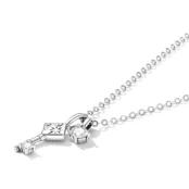 Key Necklace, 925 Sterling Silver, white gold plated, with cubic zirconia and adjustable length.