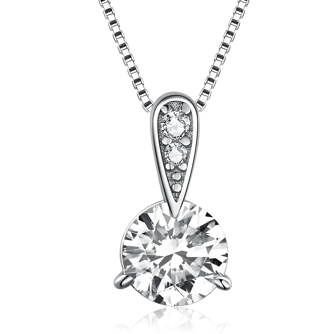 Solitaire Necklace, 925 Sterling Silver, white gold plated, with cubic zirconia and adjustable length.