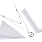 Stars Pendant Necklace, 925 Sterling Silver, white gold plated, with adjustable length.