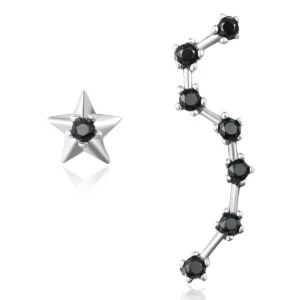 Constellation Stud Earrings 925 Sterling Silver, white gold plated, with black cubic zirconia
