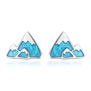 Mountains Stud Earrings 925 Sterling Silver, white gold plated, with light blue enamel