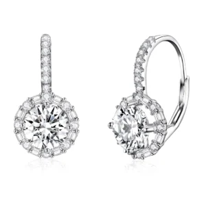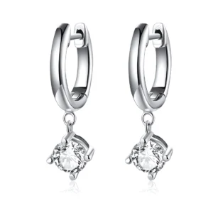 Solitaire Drop Earrings 925 Sterling Silver, white gold plated, with a brilliant round-cut cubic zirconia drop pendant