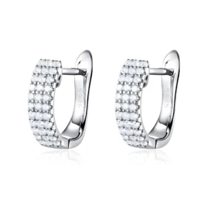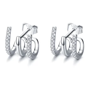 Triple Hoop Earrings 925 Sterling Silver, white gold plated, with cubic zirconia