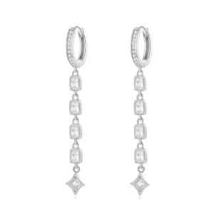 Sparkle Dangling Drop Earrings 925 Sterling Silver, white gold plated, with cubic zirconia