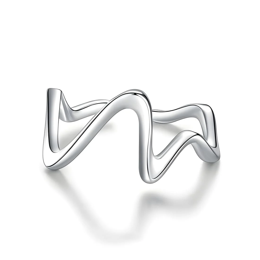 ECG Ring 925 Sterling Silver, white gold plated – adjustable