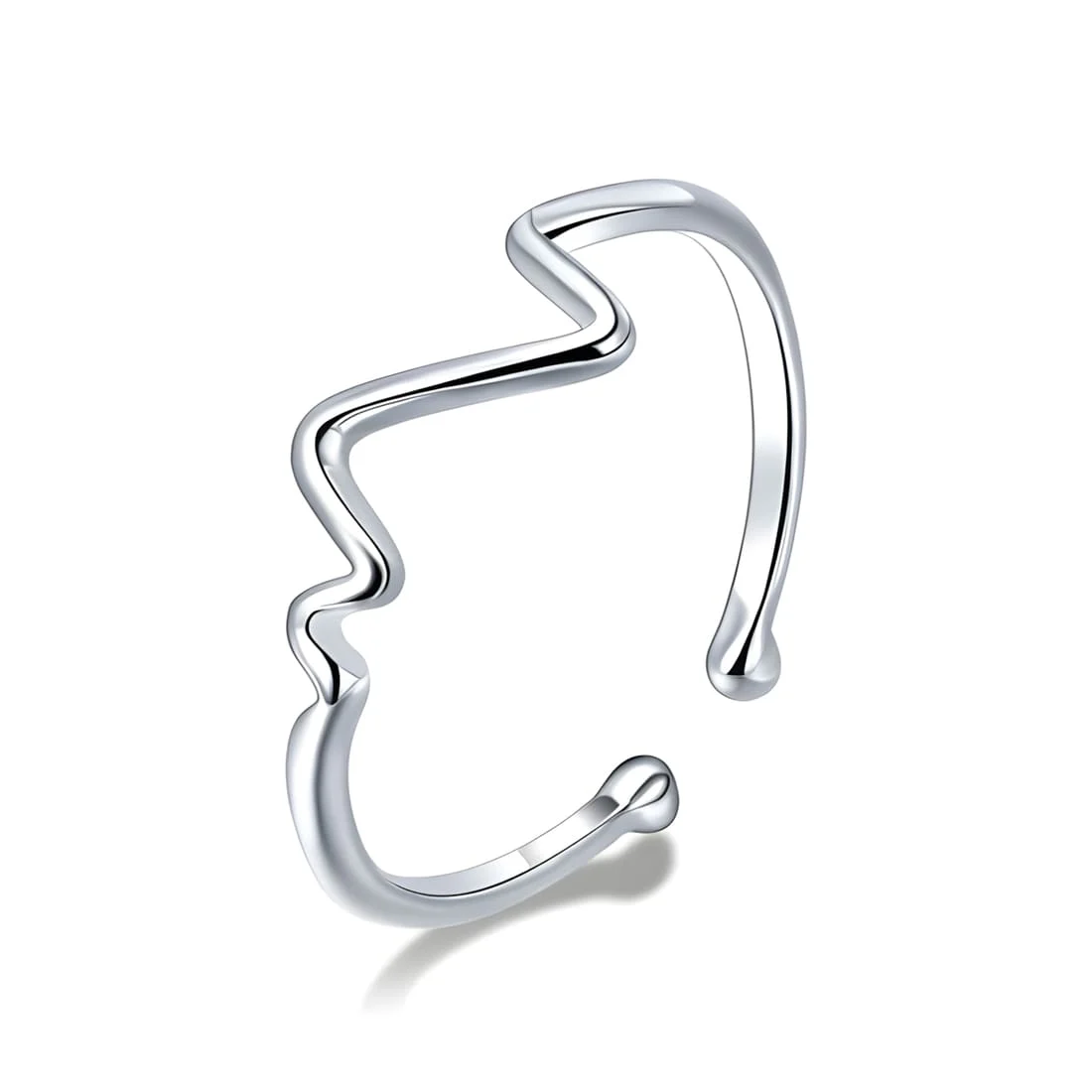 ECG Ring, 925 Sterling Silver, white gold plated – adjustable.