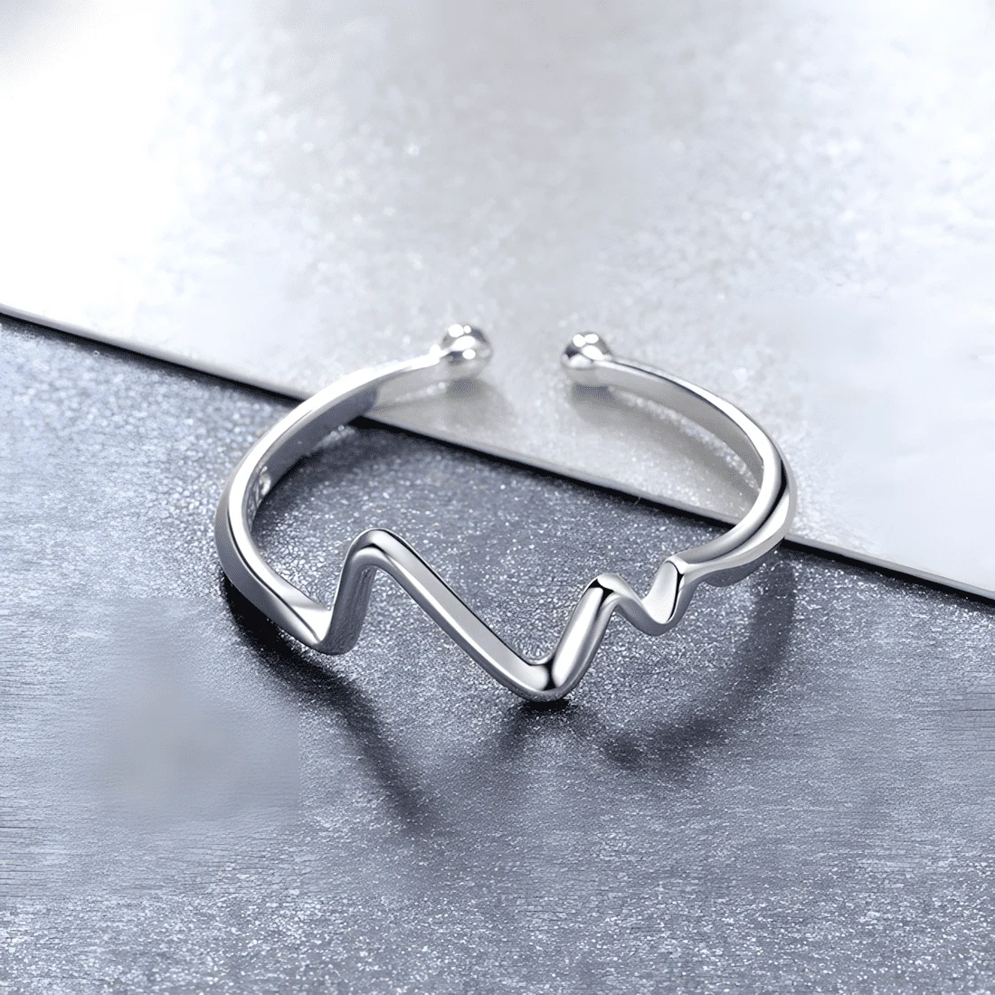 ECG Ring 925 Sterling Silver, white gold plated – adjustable
