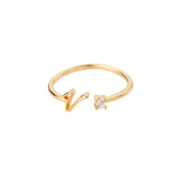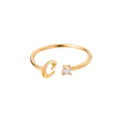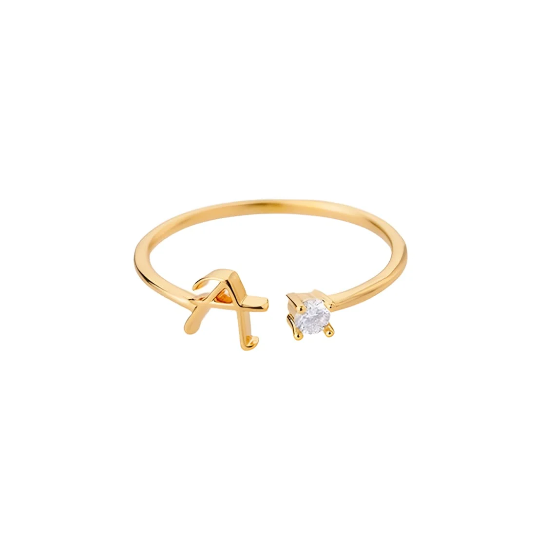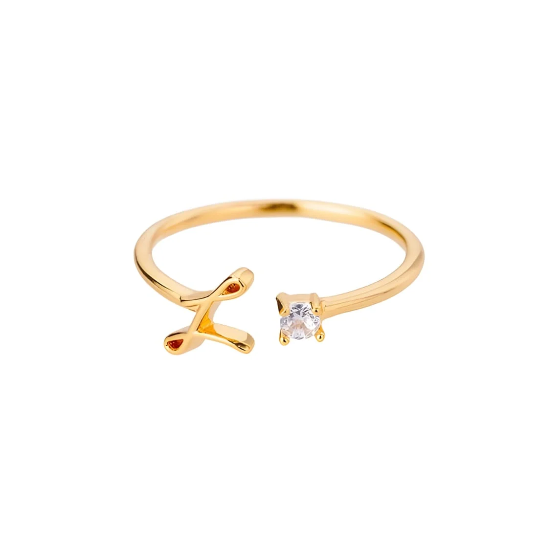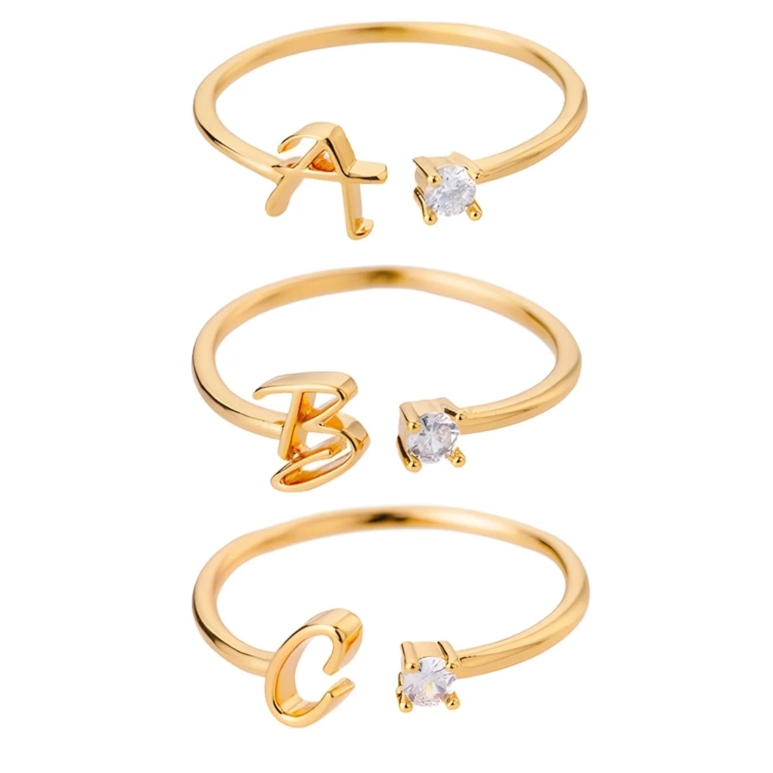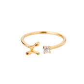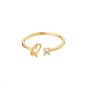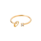Initial Letter Ring Stainless steel, white, yellow or pink gold plated, with cubic zirconia – adjustable