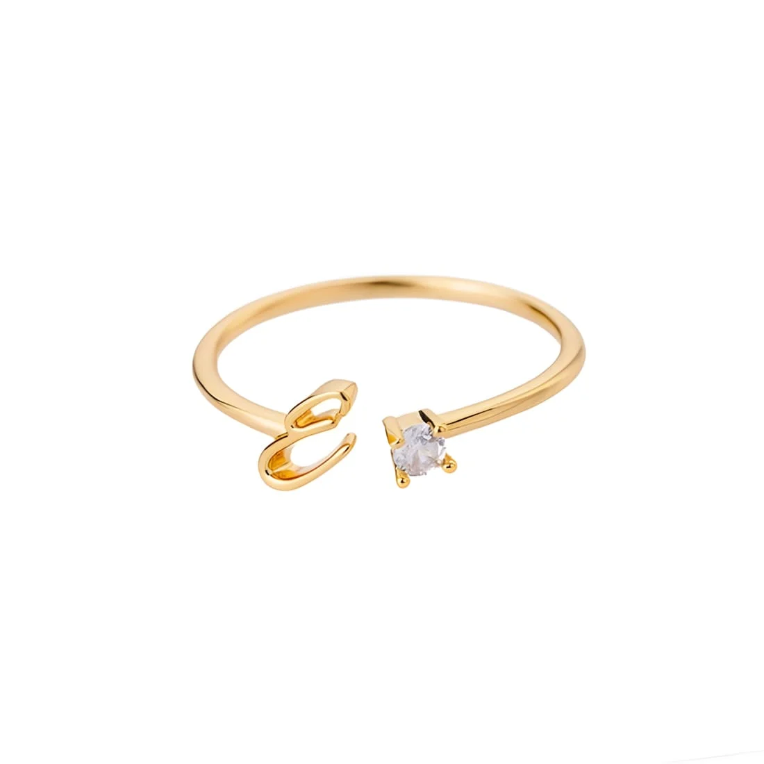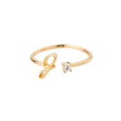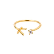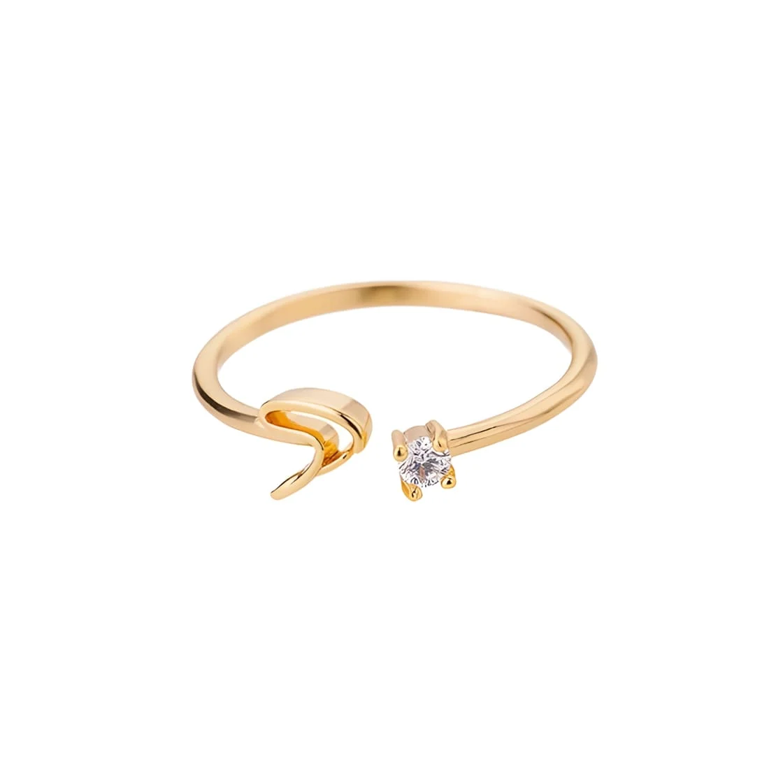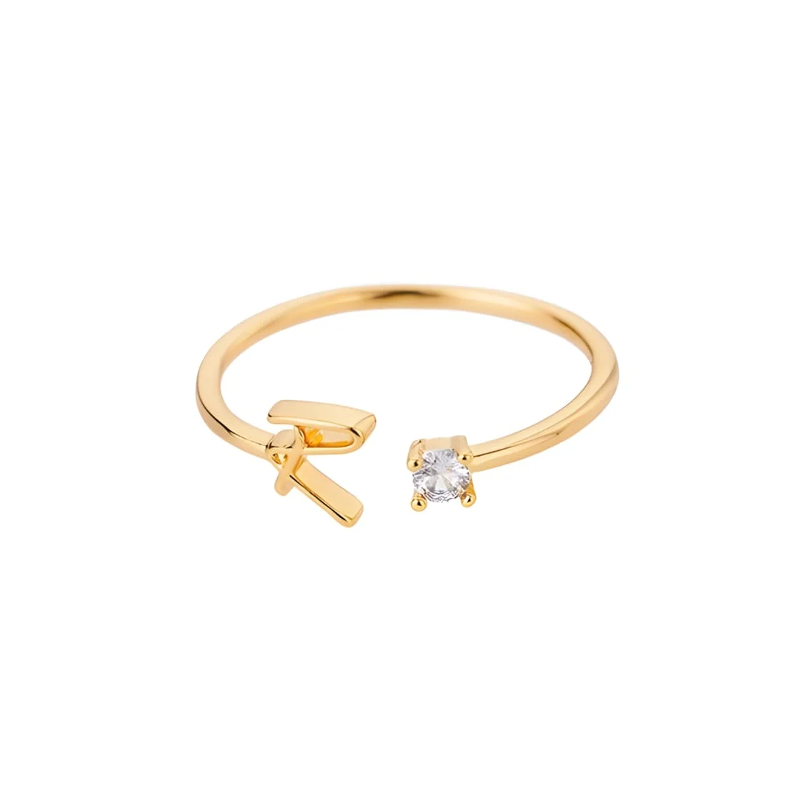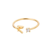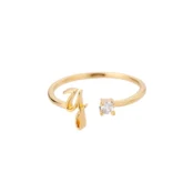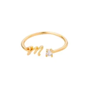 Initial Letter Ring Stainless steel, white, yellow or pink gold plated, with cubic zirconia – adjustable