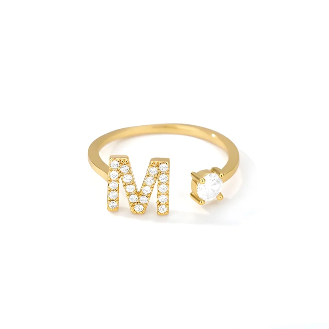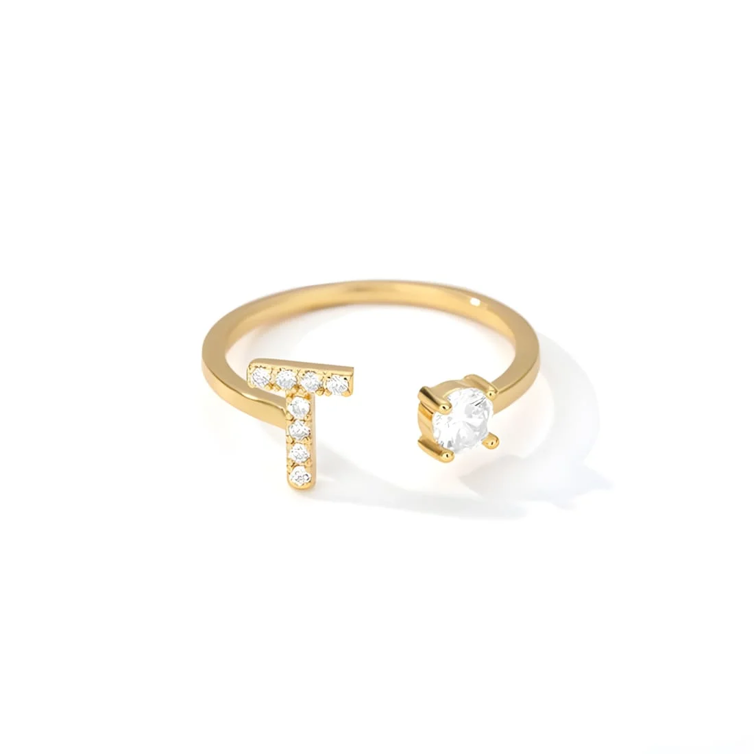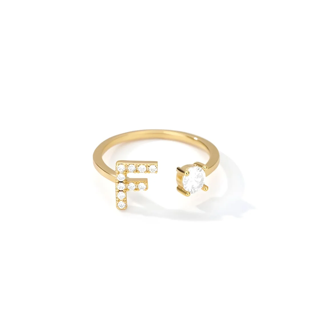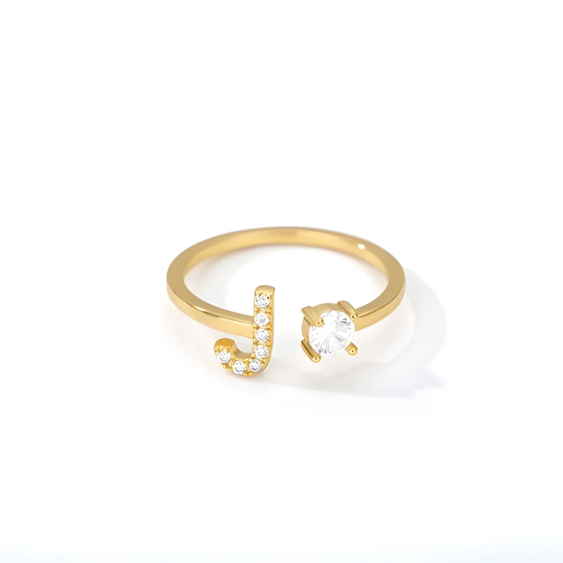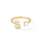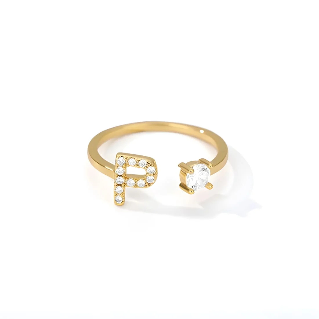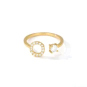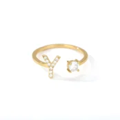 Initial Letter Ring, Stainless steel, yellow gold plated, with cubic zirconia – adjustable.