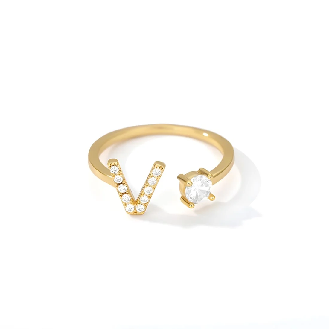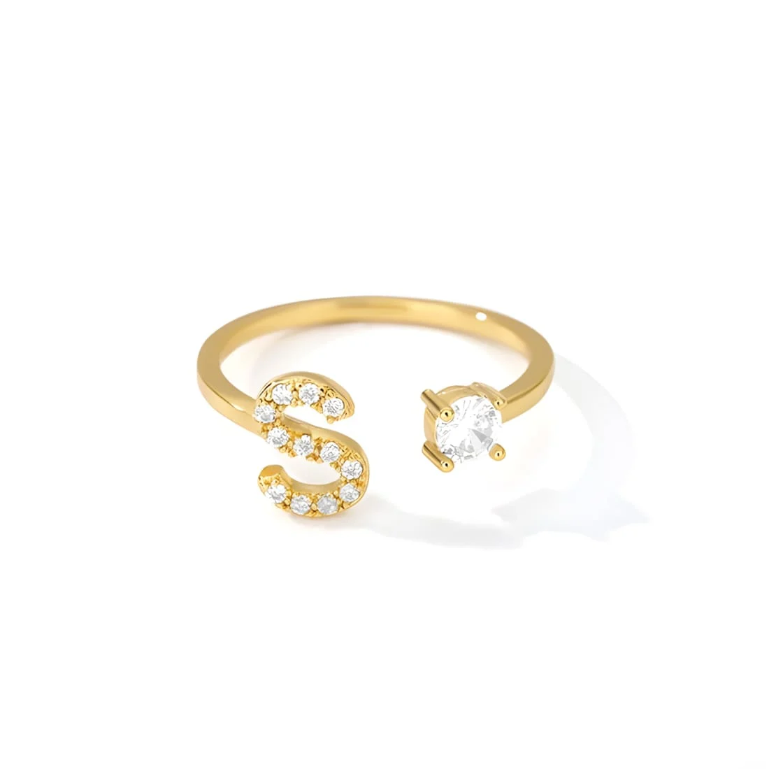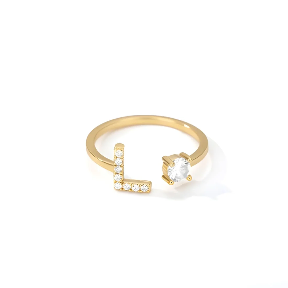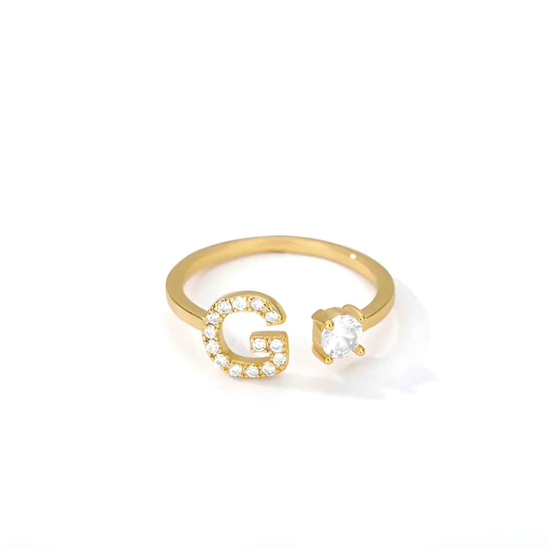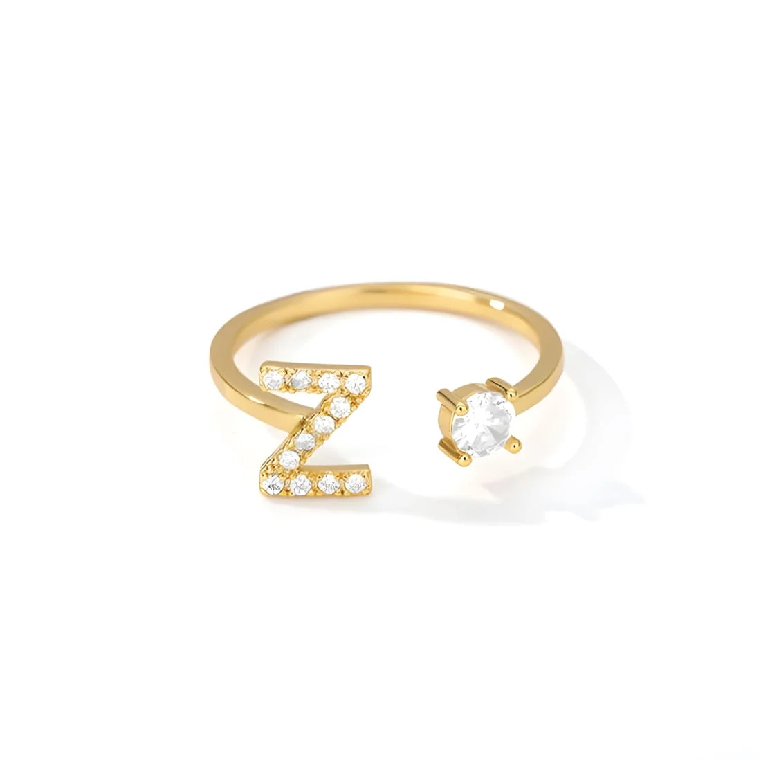 Initial Letter Ring, Stainless steel, yellow gold plated, with cubic zirconia – adjustable.