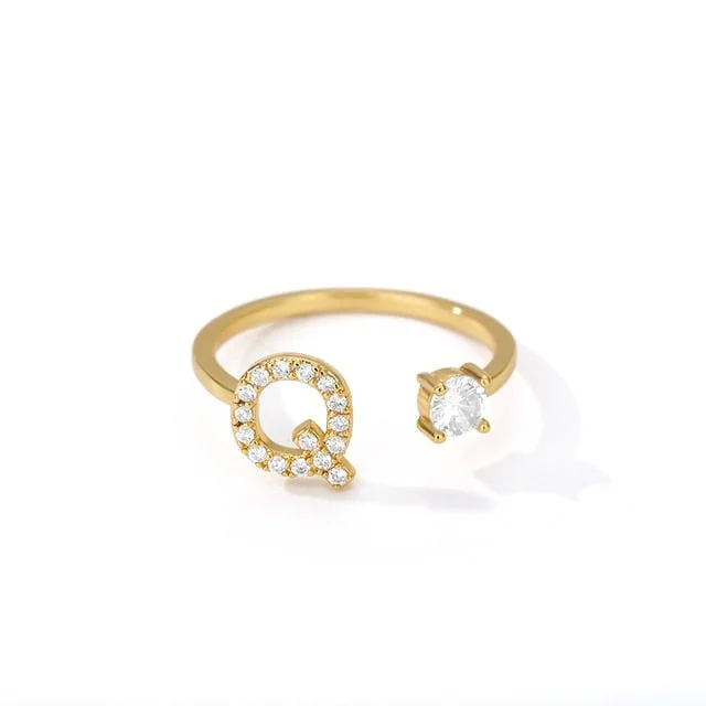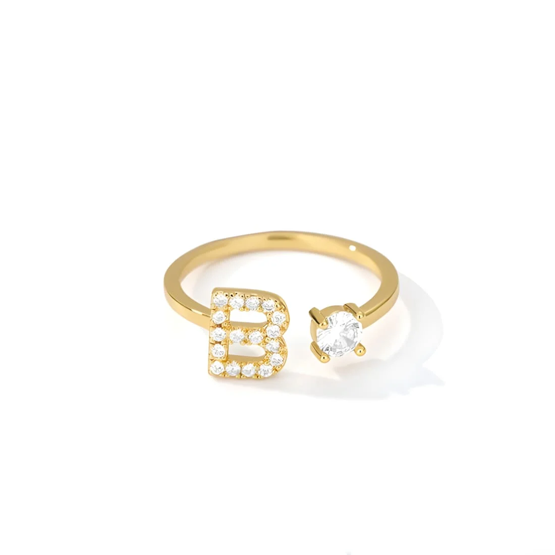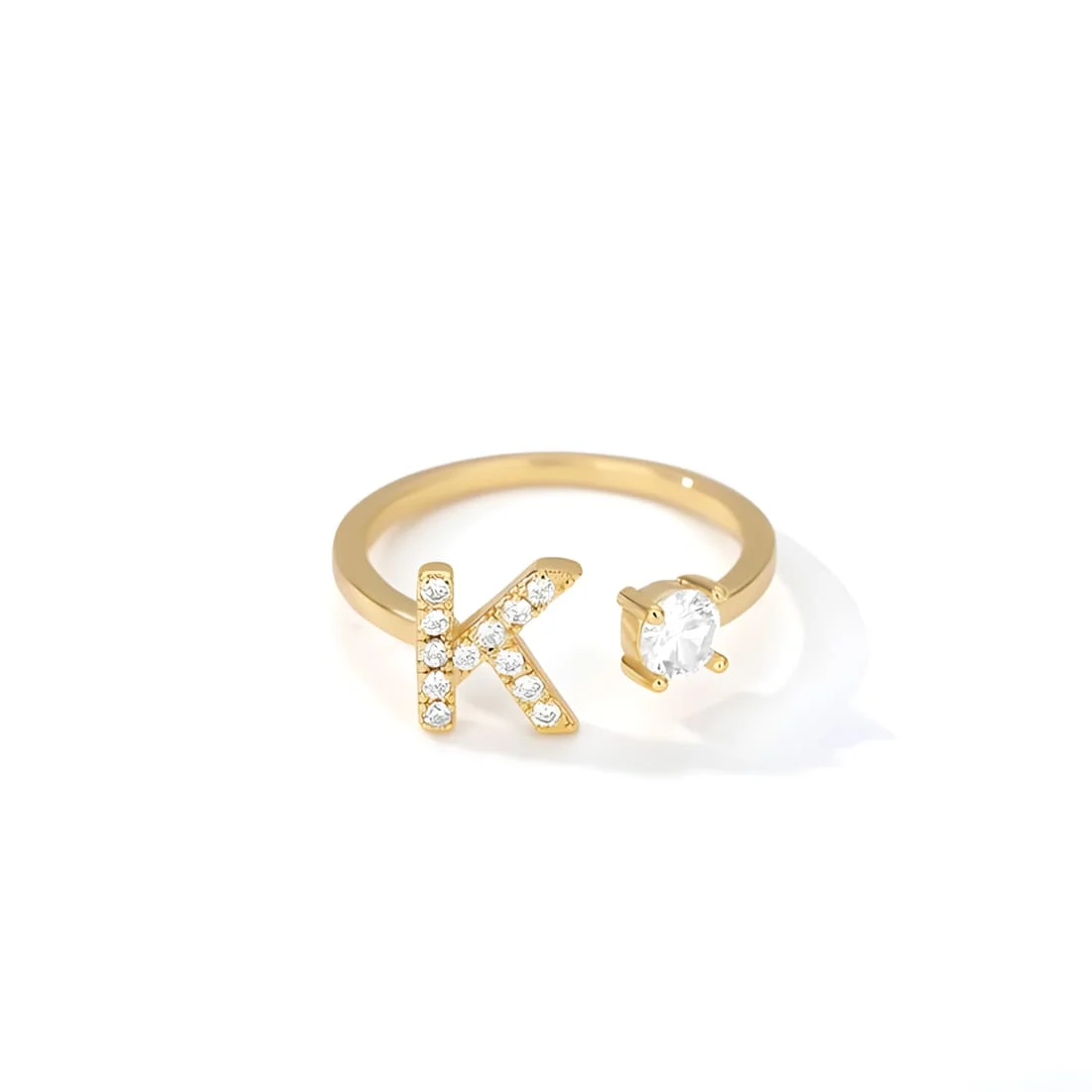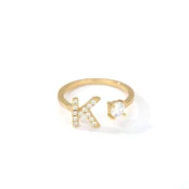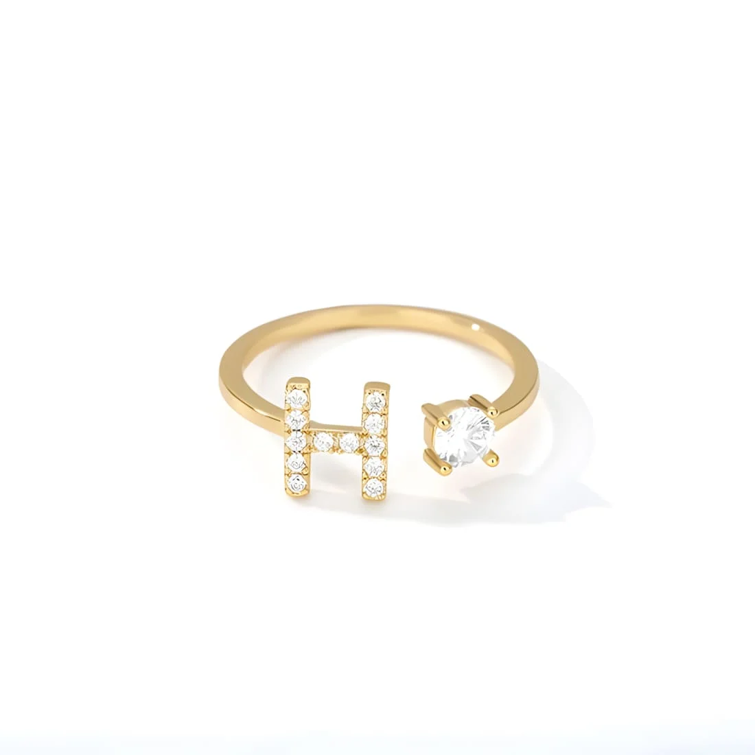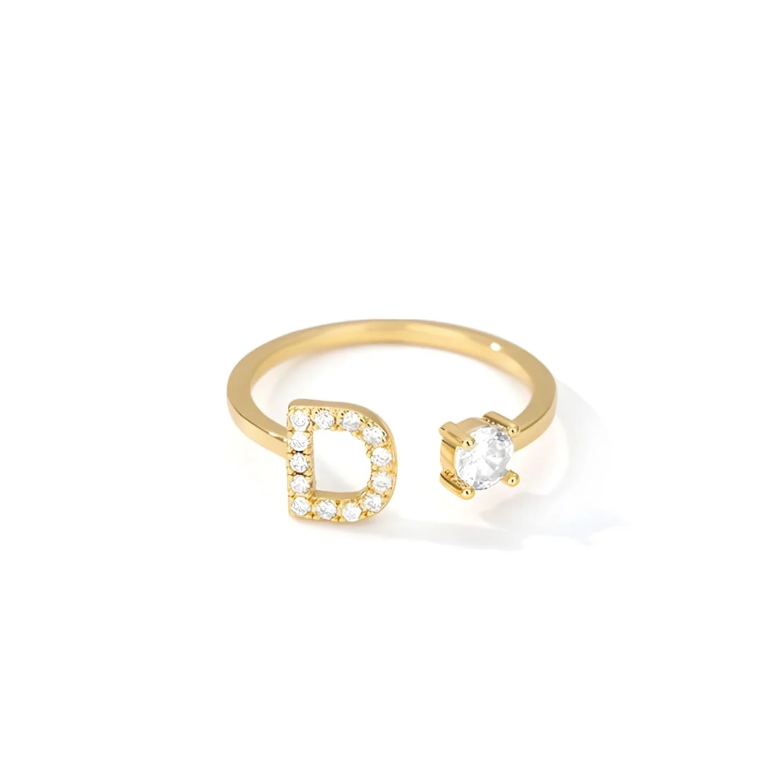 Initial Letter Ring, Stainless steel, yellow gold plated, with cubic zirconia – adjustable.