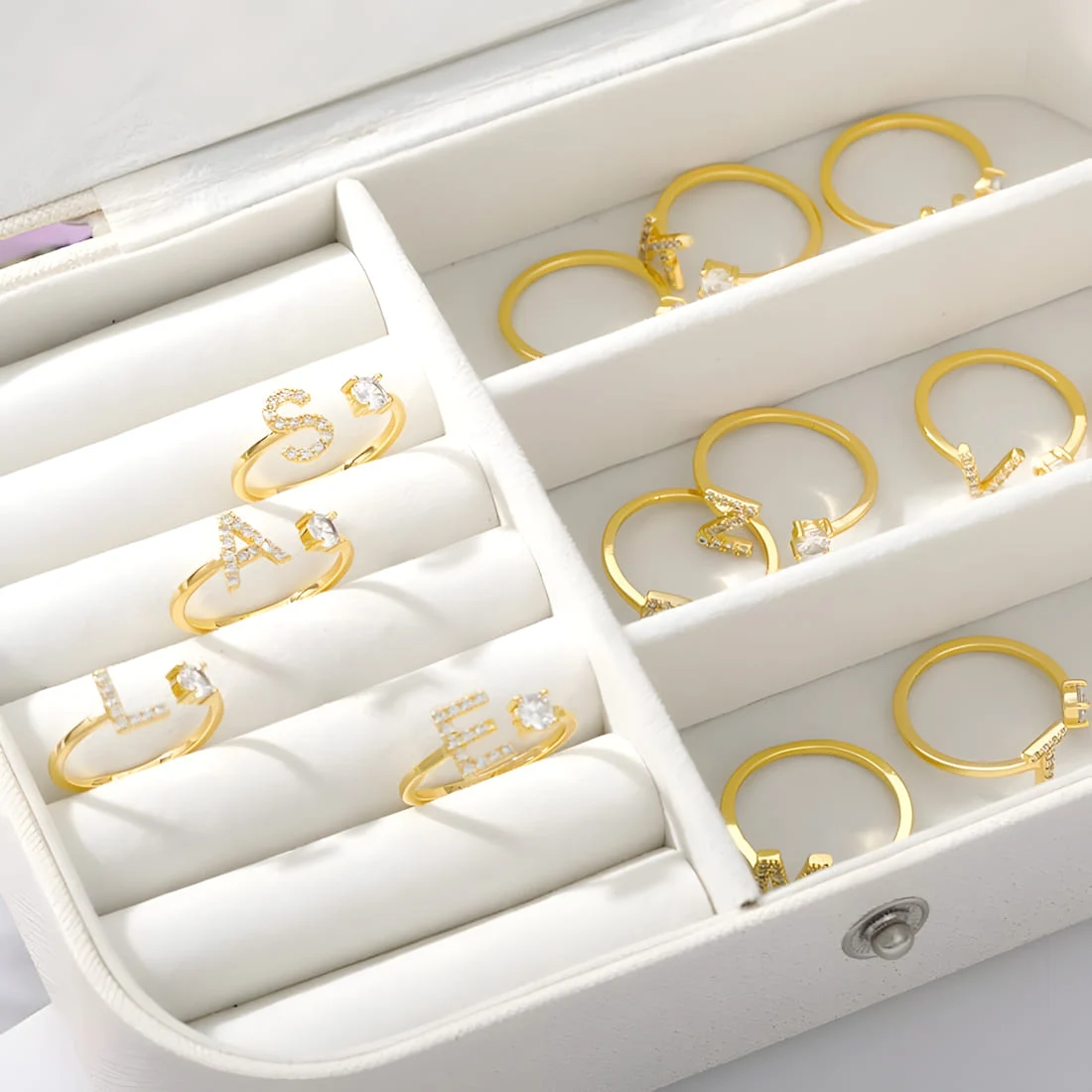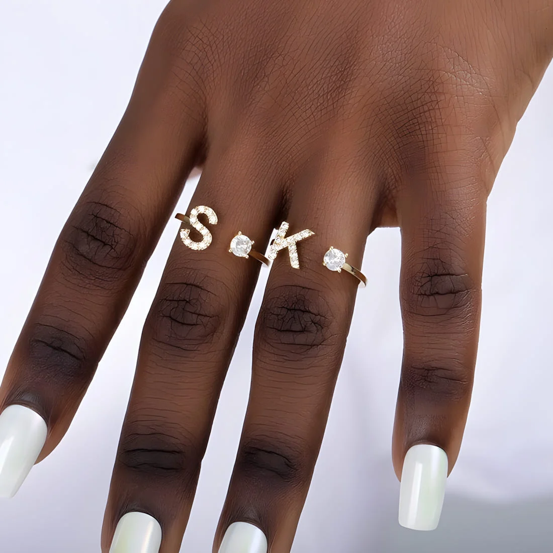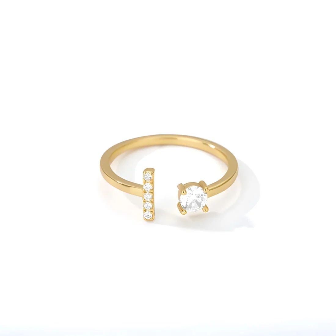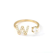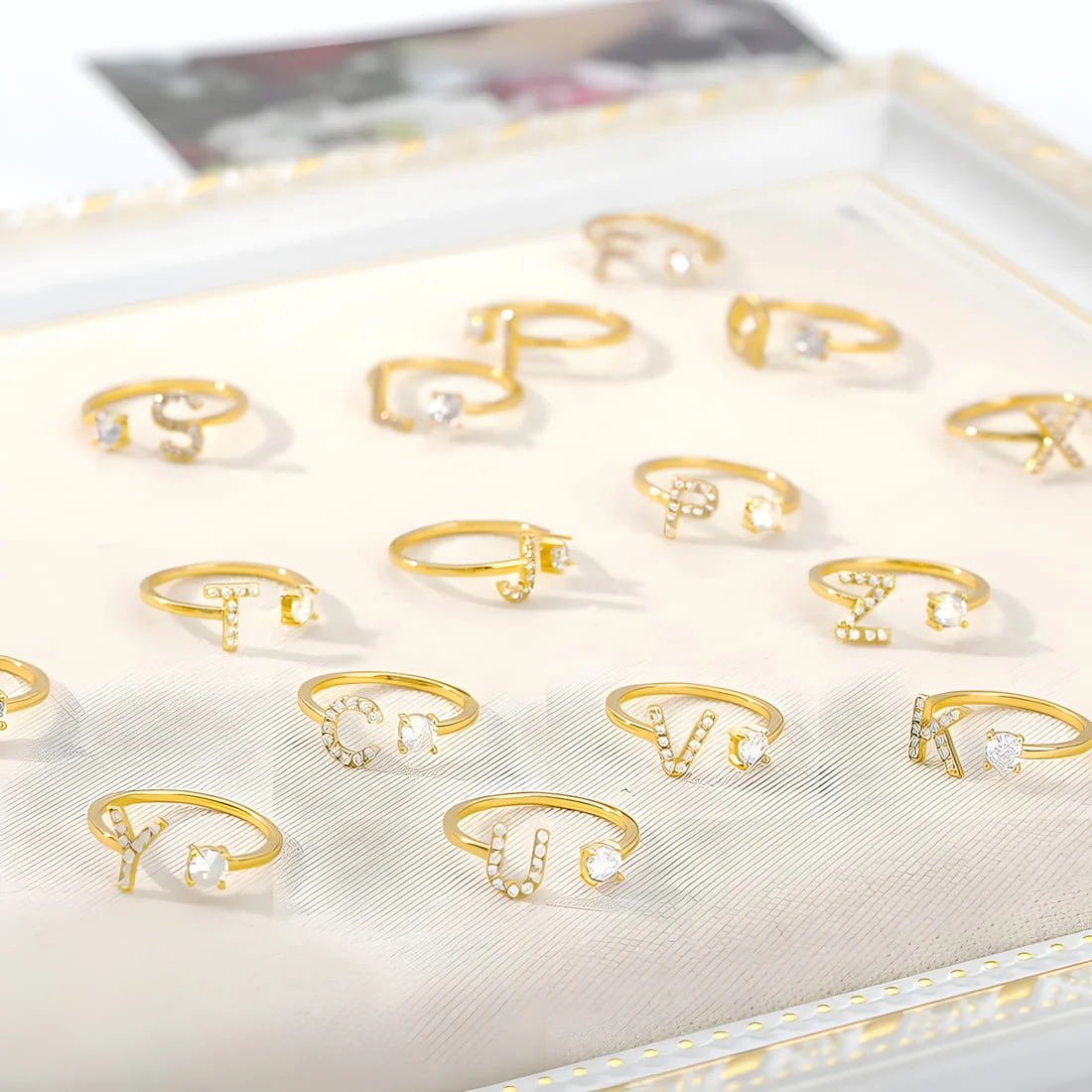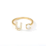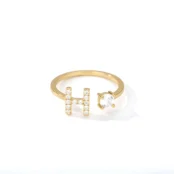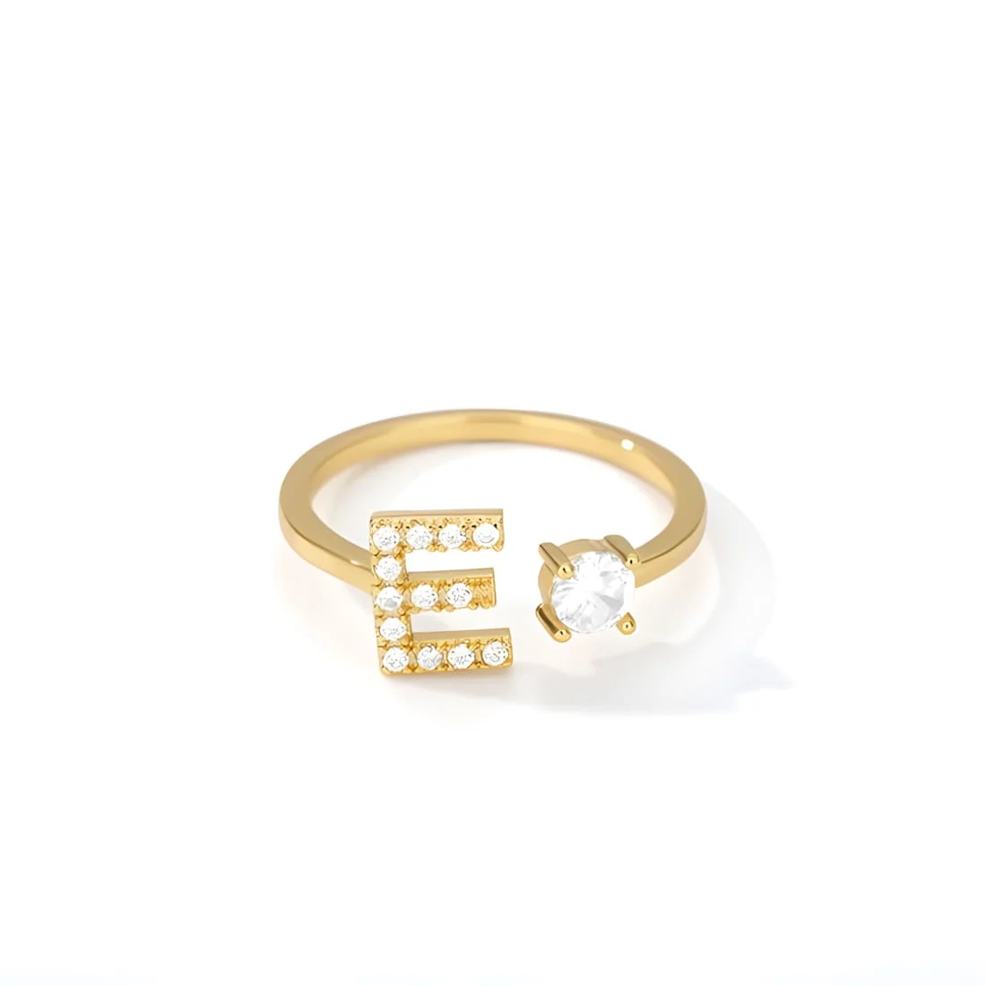 Initial Letter Ring, Stainless steel, yellow gold plated, with cubic zirconia – adjustable.