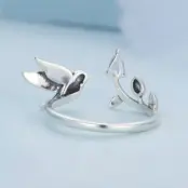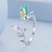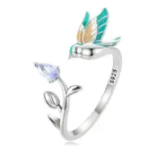 Little Bird Ring 925 Sterling Silver, white gold plated, hand enameled with purple cubic zirconia – adjustable