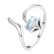Opal Fox Ring, 925 Sterling Silver, white gold plated, in minimalist style – adjustable.