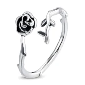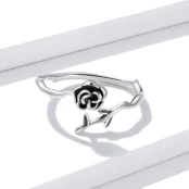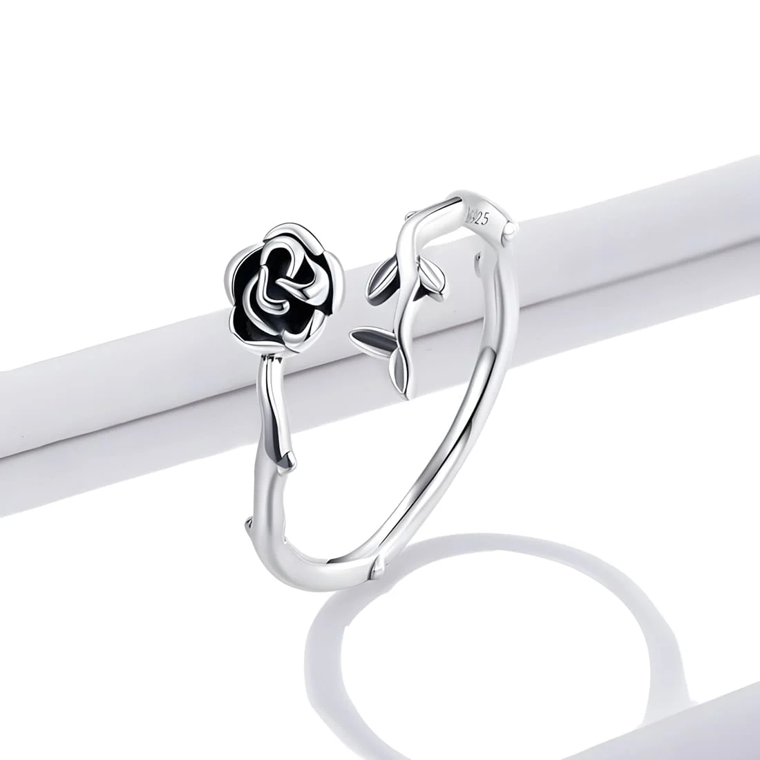 Rose Ring 925 Sterling Silver, white gold plated – adjustable