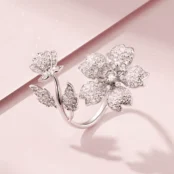 Shining Sakura Ring, 925 Sterling Silver, white gold plated, with cubic zirconia – adjustable.